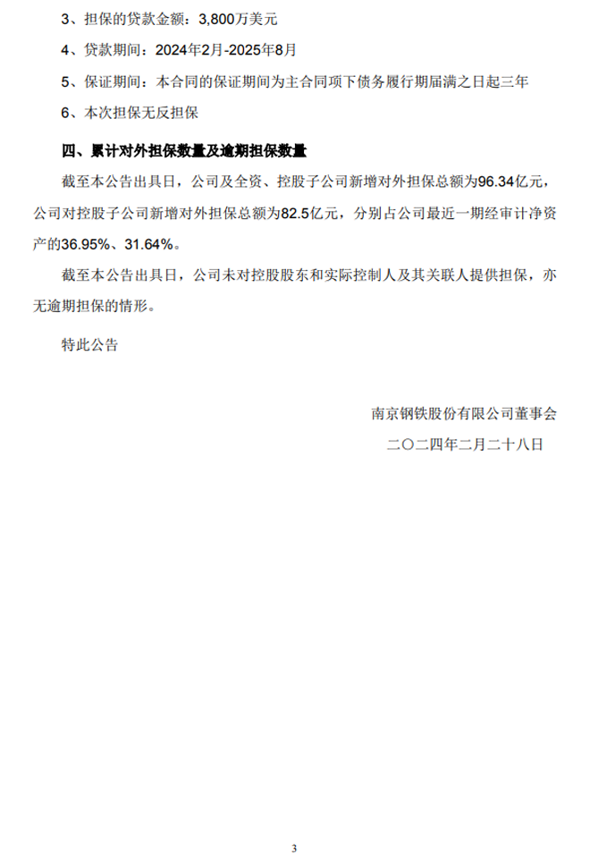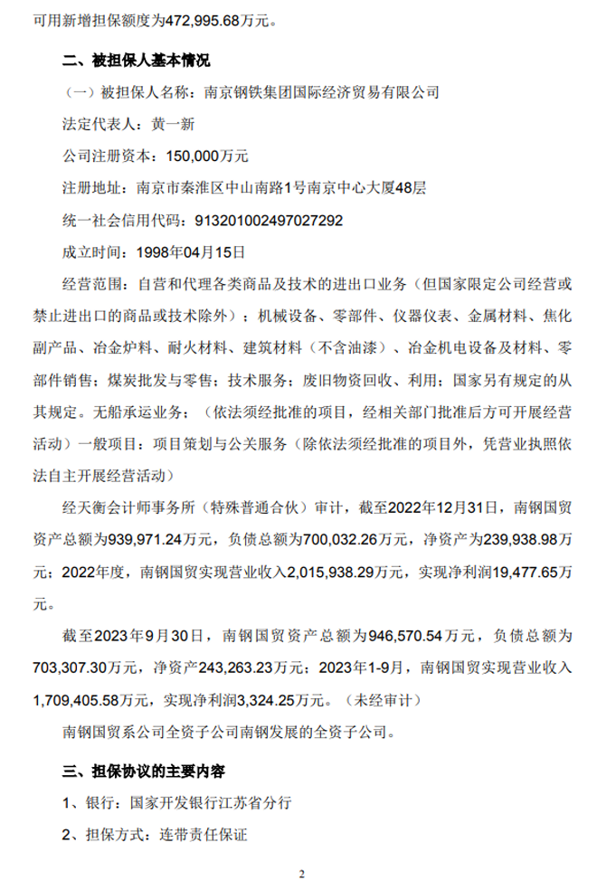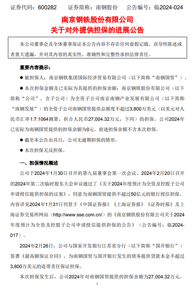 南鋼股份:南京鋼鐵股份有限公司關(guān)于對外提供擔保的進展公告