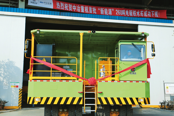 目前,260噸電驅鐵水車首批產品通過重載功能調試和性能驗證順利下線。經過重載型式試驗,260噸電驅鐵水車實現了高承載、長續航、輕量化的設計目標;通過技術創新,讓電機體積減小一半,但功率提高一倍,每臺車年碳排放量減少34噸左右。